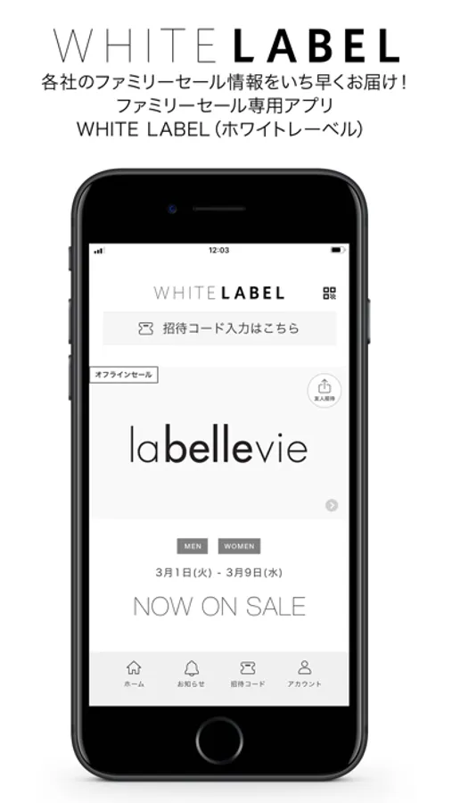 la belle vie株式会社が提供する、ファミリーセール専用アプリ『White Label(ホワイトレーベル)』。