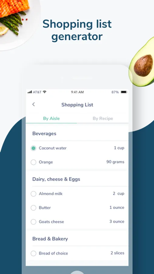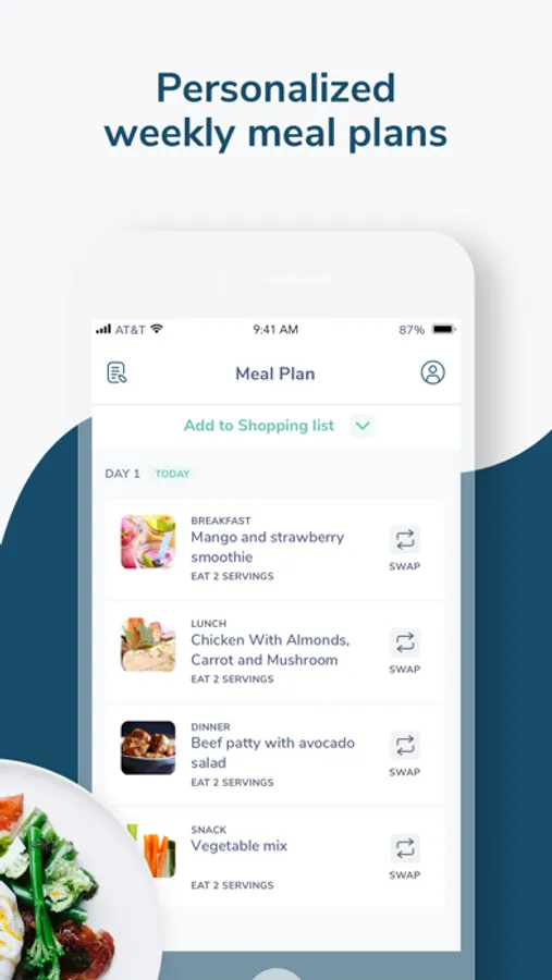 Delicious, easy-to-make recipes for breakfast, lunch, dinner & snacks. Automatically plan your entire week with meals that match your selected program. And with a single click, create an instant shopping list for your convenience.