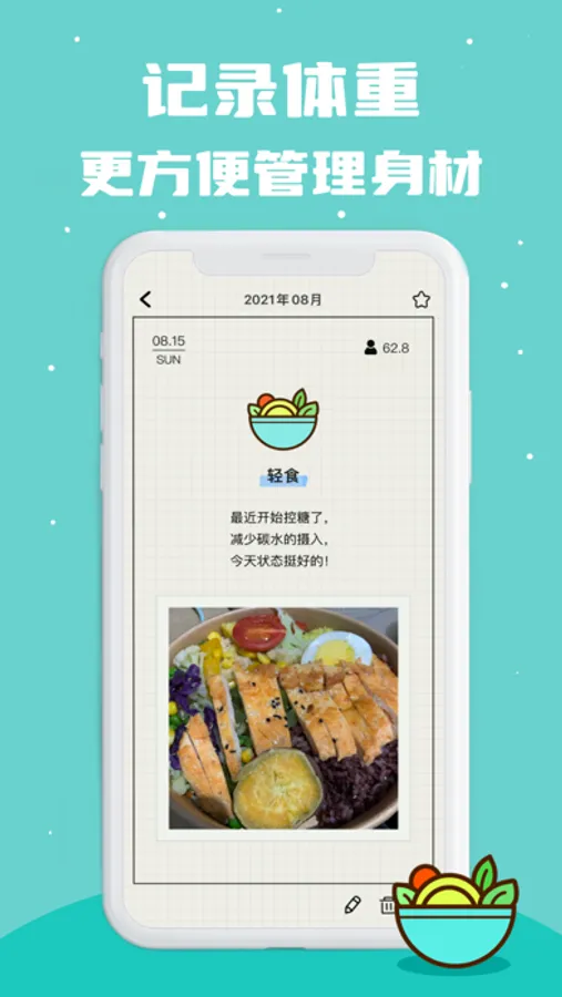 「吃饭打卡」就是这样一款饮食日记本,把每天吃的东西记录下来,可以检查并反省错误的饮食习惯,帮助我们逐渐养成健康的饮食习惯。