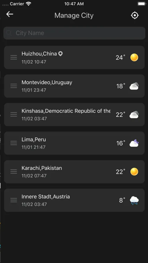 Create a weather map, easily check local weather information and global weather information, New York weather, Chicago weather, Delhi, Madrid, etc., just add them and you can view them immediately