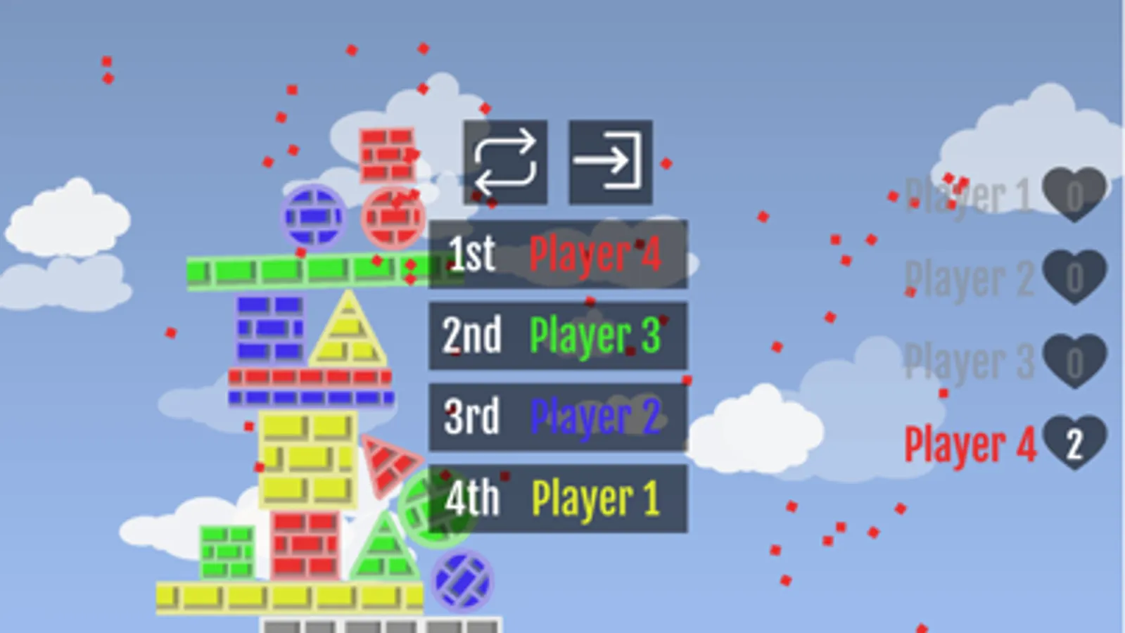 You can play in multiplayer mode with up to 4 friends. Customise each game by selecting how many lives you want the players to have, as well as how wide you want the base of the tower to be. Once ready you and your friends can begin playing. Players take it in turns adding blocks to the tower. Everyone has their own colour of blocks, creating a wonderfully colourful tower as it expands upwards. Once a player has run out of lives they are out and the game continues without them. The last remaining player wins the game and can claim the title of the official ‘Flumble Champion’!