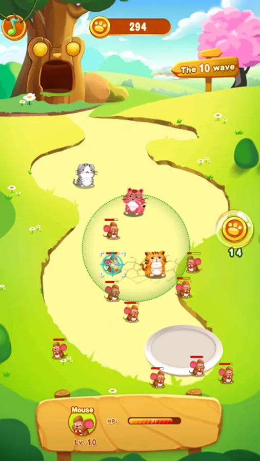 The fateful confrontation of cat and mouse! Command your cat to stop the mice from stealing the cake!