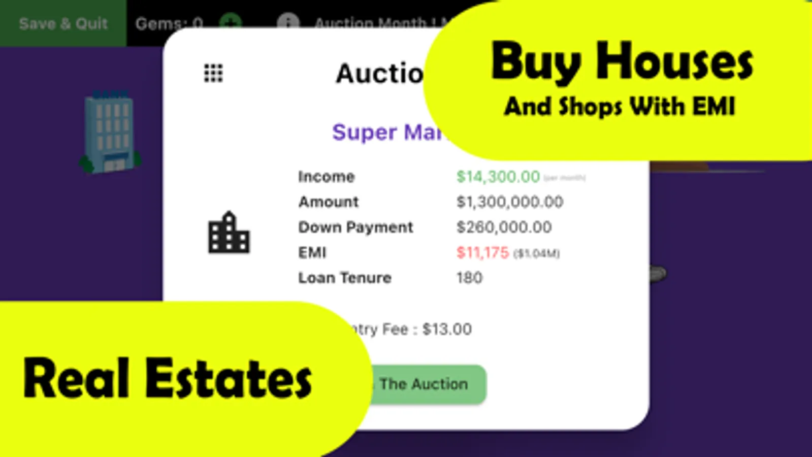 This is the greatest feature of Rat Race 2. Two or any number of players can host a multiplayer game and compete for the leader board. Each player can plot their own strategies to manage their cashflow. Players compete in an auction to buy real estate properties. The player who has the best strategy on finance and real estates wins the game.