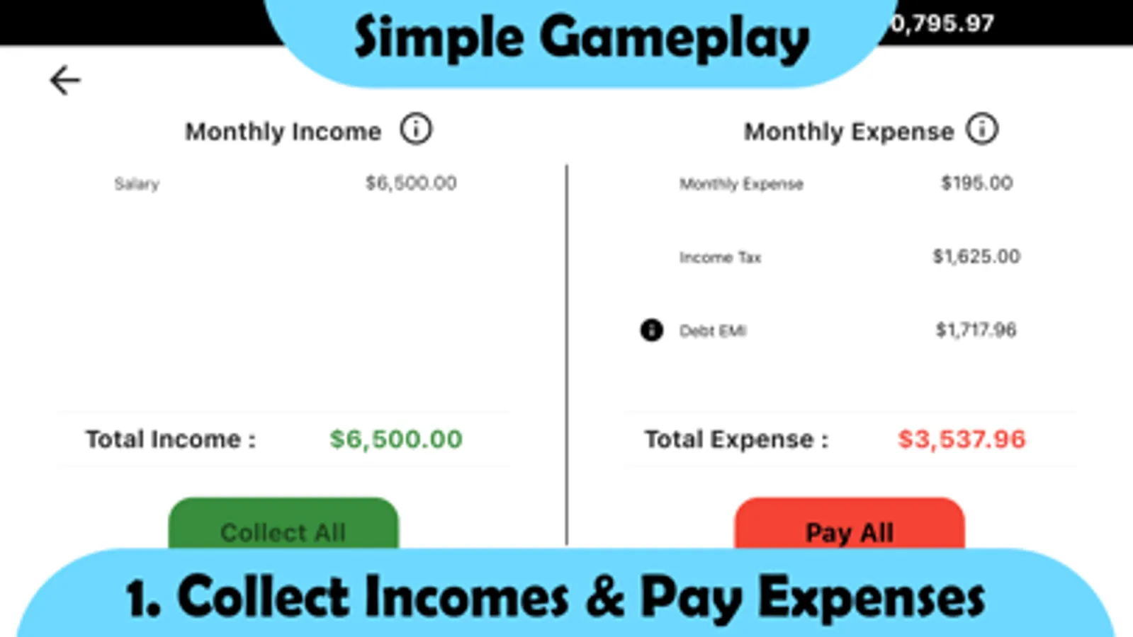 Pay expenses, Collect Incomes, Pay off loans, manage cashflow, Buy Stocks, invest in share market, real estate, mutual funds, fixed deposits and recurring deposits and get to know how to play the money game in real life.