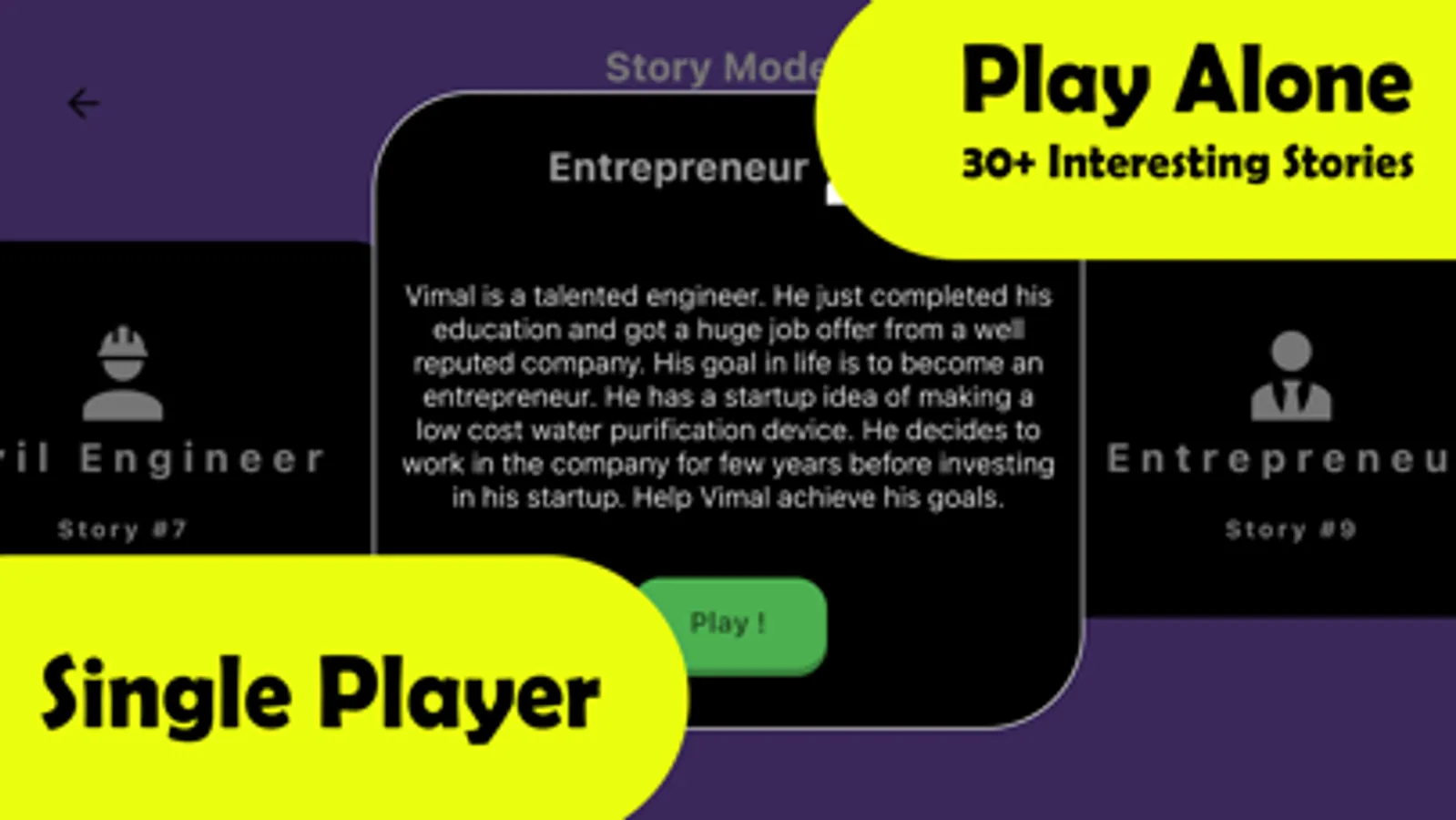 This game teaches you the importance of being an entrepreneur and the solutions to the problems faced by an entrepreneur. This game answers the most important question: How To Become An Entrepreneur?