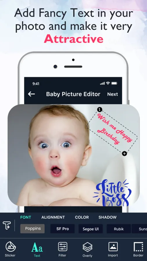 + Add cute baby sticker to your baby pic or insert baby photo into the ready baby photo frames