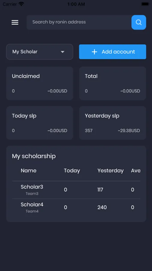 Axie Trackers app that helps you manage your scholarships or track Axie Information.