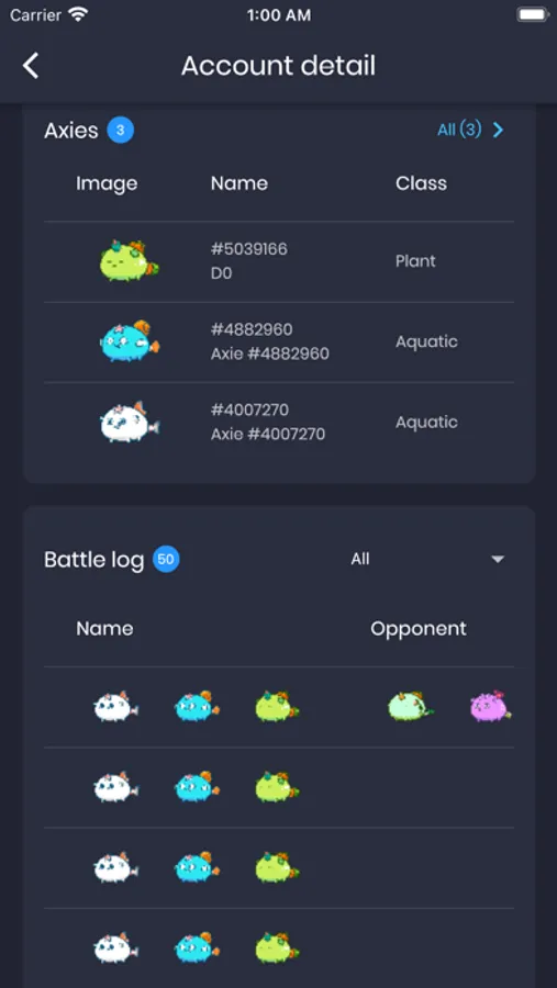 - Information of Axie