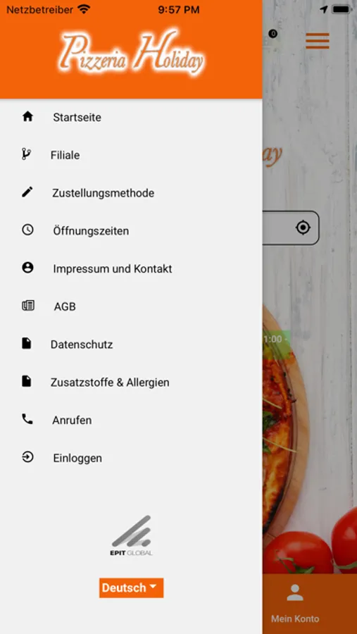 Herzlich Willkomen bei Pizzeria Holiday in Haan. Wir bedienen unsere Kunden mit italienische Pizza, Burger, Pasta Speisen und machen das seit mehreren Jahren aus Leidenschaft. Wir freuen uns immer wieder neue Kunden unsere Herkunft näher zubringen und möchten ihnen die Möglichkeit geben, ihre Bestellung unkompliziert und total einfach abzugeben. Aus diesem Grund, möchte wir ihnen unsere neue App und unseren Online Shop vorstellen, mit dem Sie problemlos über Paypal, Bar und Kreditkarte zahlen können.