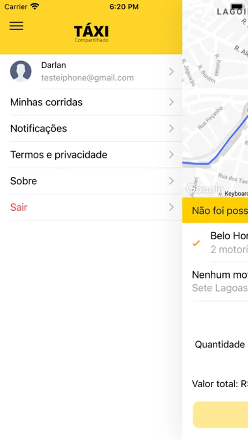 Ficou muito mais simples solicitar uma corrida para BH ou Sete Lagoas.