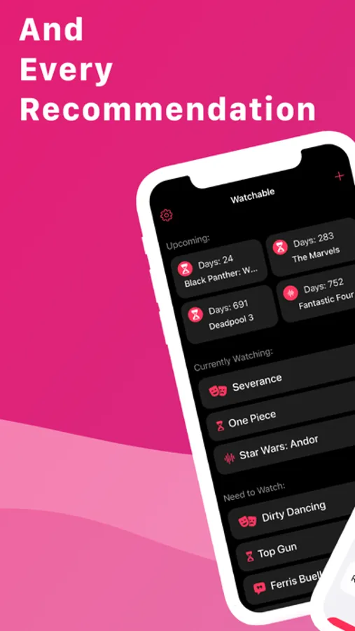 Introducing Watchable - the ultimate app for keeping track of your favorite movies, TV shows, and more.