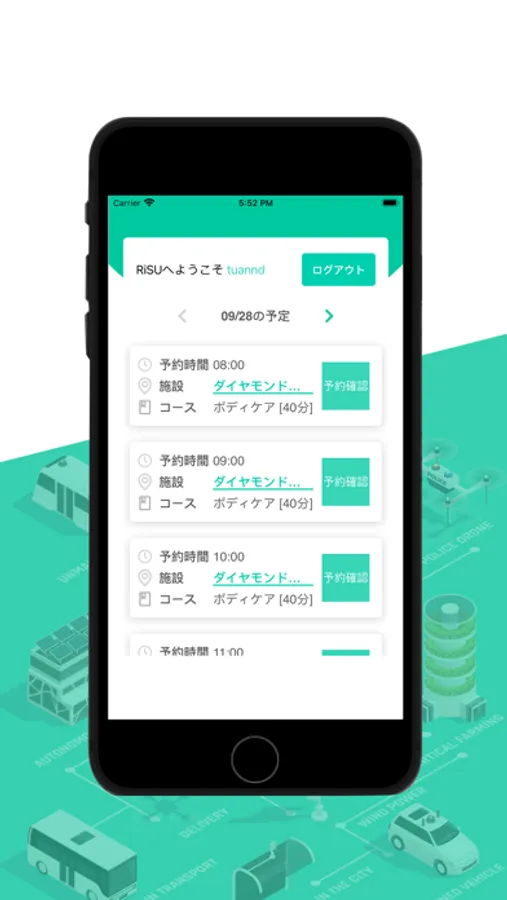 “RiSU” はrelaxation serviceのための予約管理アプリ。