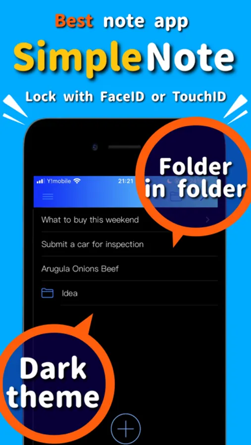 This screen allows you to see a list of memos and folder titles. If you set the dark mode, it's easy on your eyes. You can view and edit the memo by tapping the line of the memo. Tap a folder line to go to the screen inside that folder.
