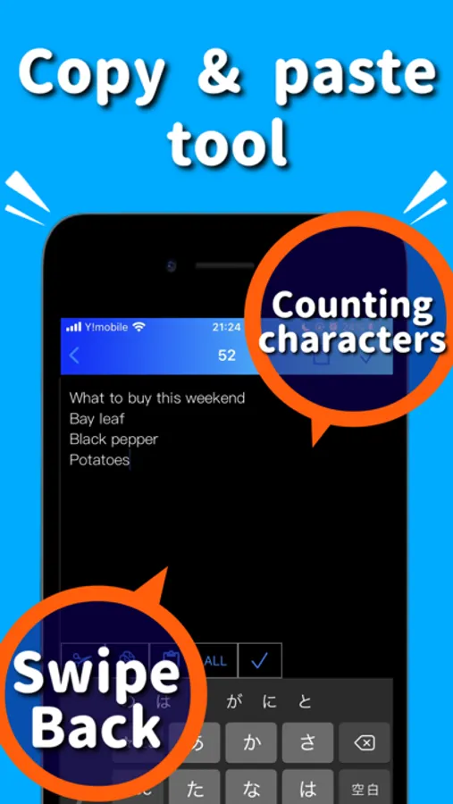 ● Paste button → Paste the text on the clipboard (you can also paste by pressing the button continuously)