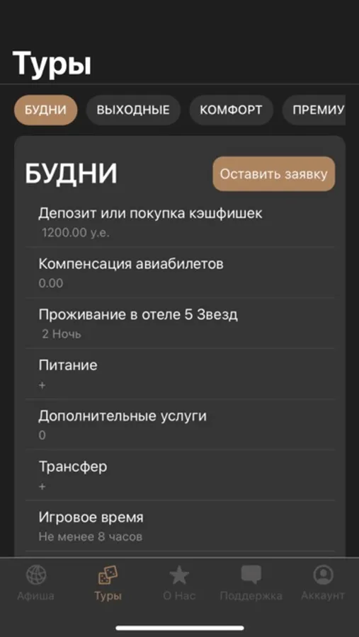 Желающие воспользоваться услугами игрового туризма могут оформить поездку в разделе приложения "Джанкет".