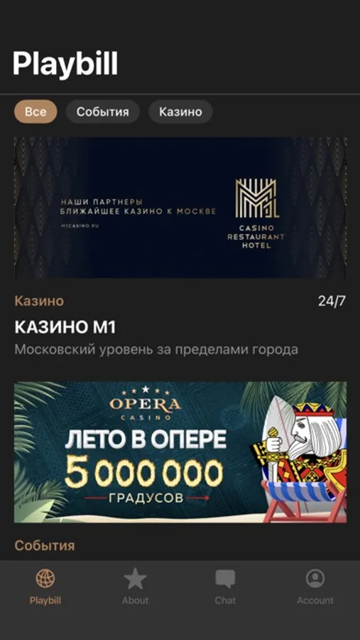 В разделе "Афиша" пользователь приложения первым узнает о всех предстоящих событиях и акциях - концертах, супериграх, розыгрышах с призами, турнирах и прочих увлекательных мероприятиях.