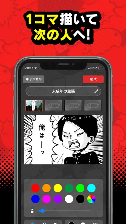 4コマ部は1つのコマを描いてみんなで4コマ漫画を作るアプリです!