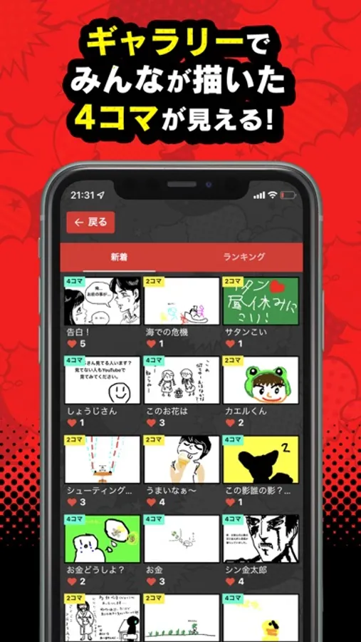 ギャラリーでは全ユーザーが描いた4コマも見ることができます。