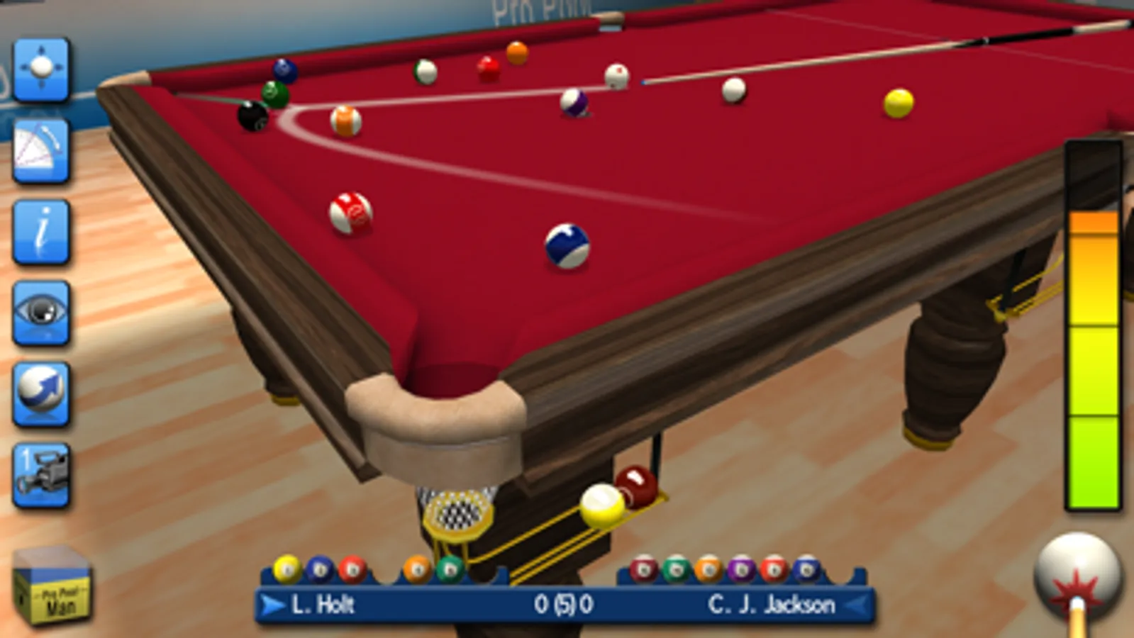 The simple click and play interface allows you to pick up and play the game quickly, or alternatively for the more serious players the game includes cue ball control allowing you to perform more advanced shots including back spin, top spin, left spin (Left english), right spin (Right english) and ball swerve.