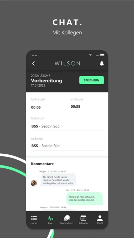 Dank der Chat-Funktion bleibst du mit deinen Kollegen im regelmäßigen Austausch und kannst schichtrelevante Informationen teilen.