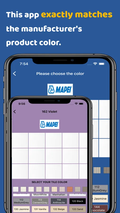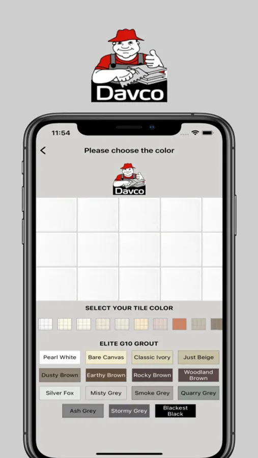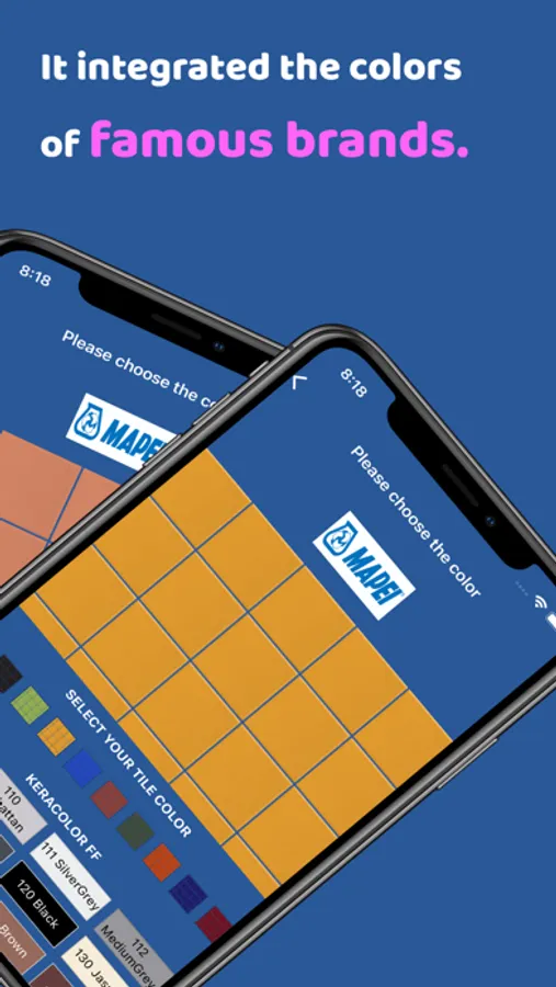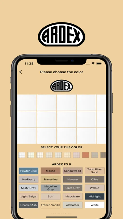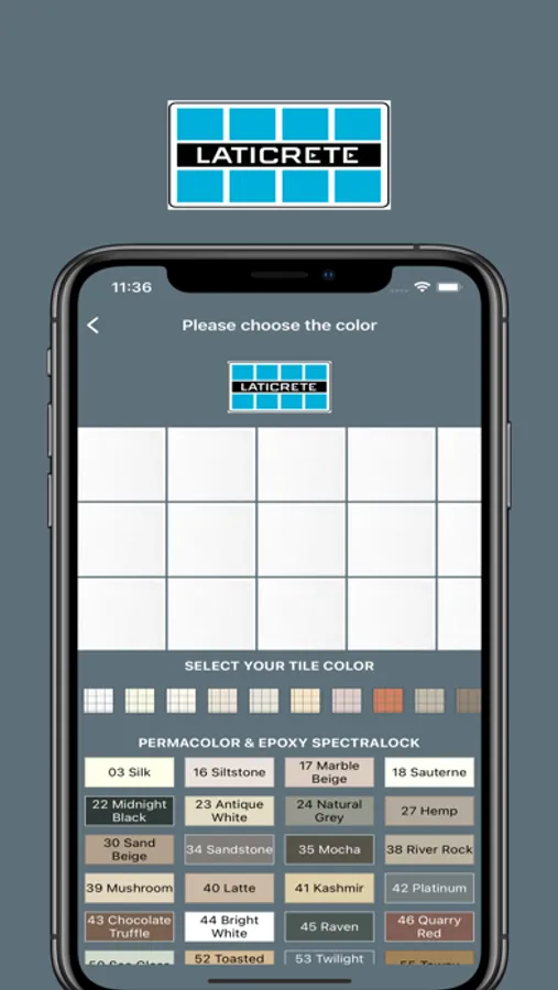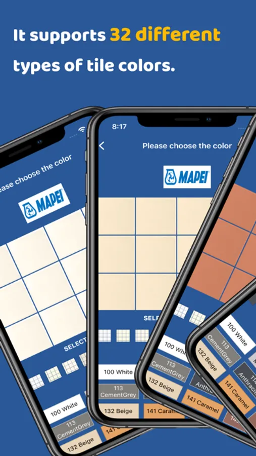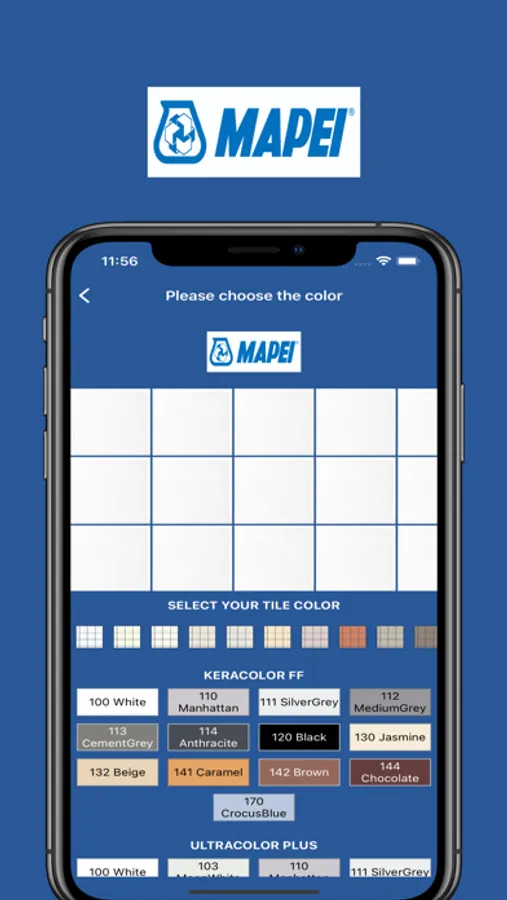 Detail screen: Select tile color, scrolling horizontal you can see the more tile selector color,