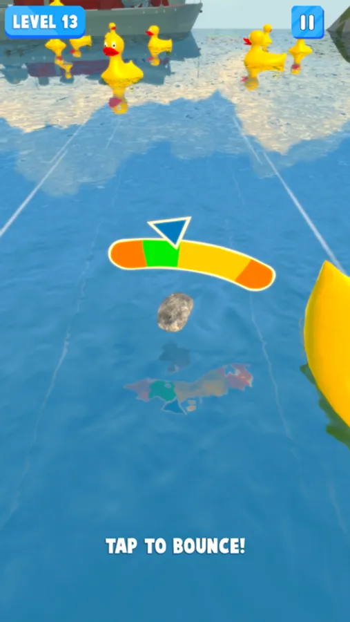 Ever wanted to be on a shore and skip that perfectly flat stone ? Do you remember your first throw? Your first bounce? Its time to relive those memories. Aim your throw, make a curve around obstacles and throw the rock. Make it bounce on the right time and reach as far as you can!
