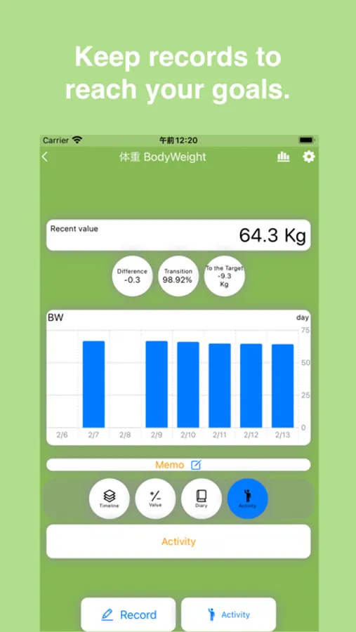 For example, if you want to manage your weight, why not write down a meal menu or set medication or exercise as an activity?