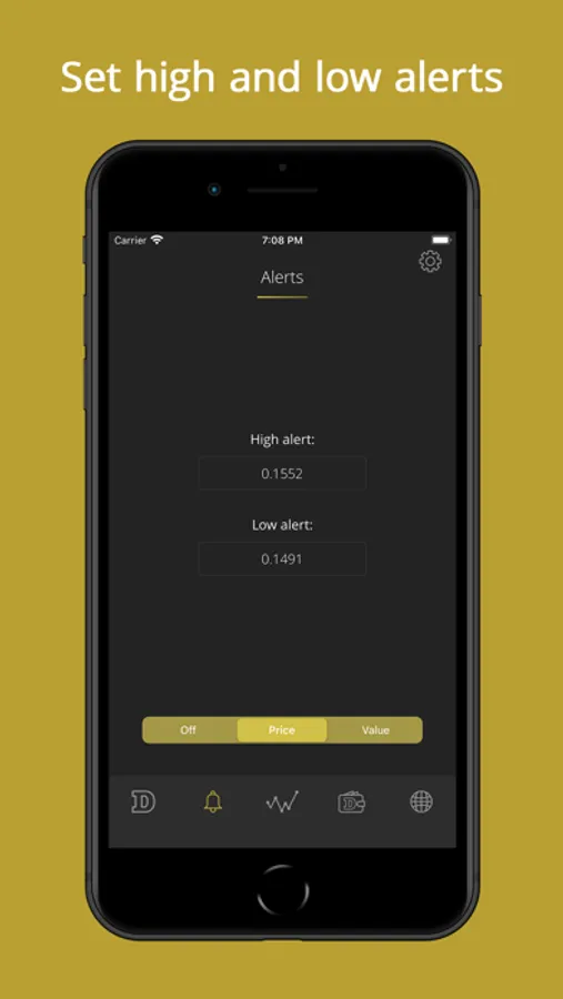 35 local currencies are supported. Once onboarded you will be able to configure high/low alert values and your notification preferences.