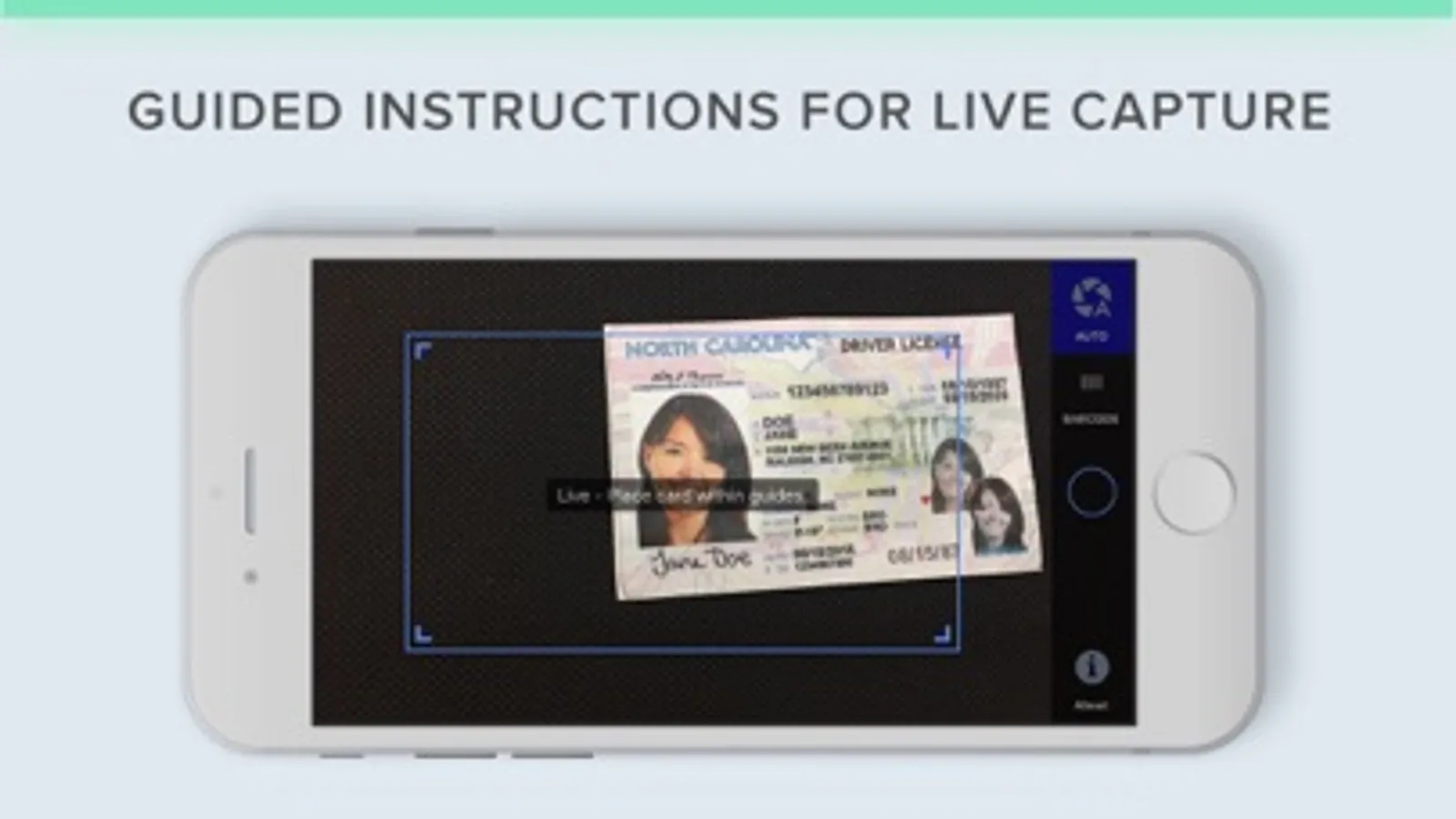 • Automatically extracts data from real-time video and still images of driver’s licenses, work authorizations, and identification cards.