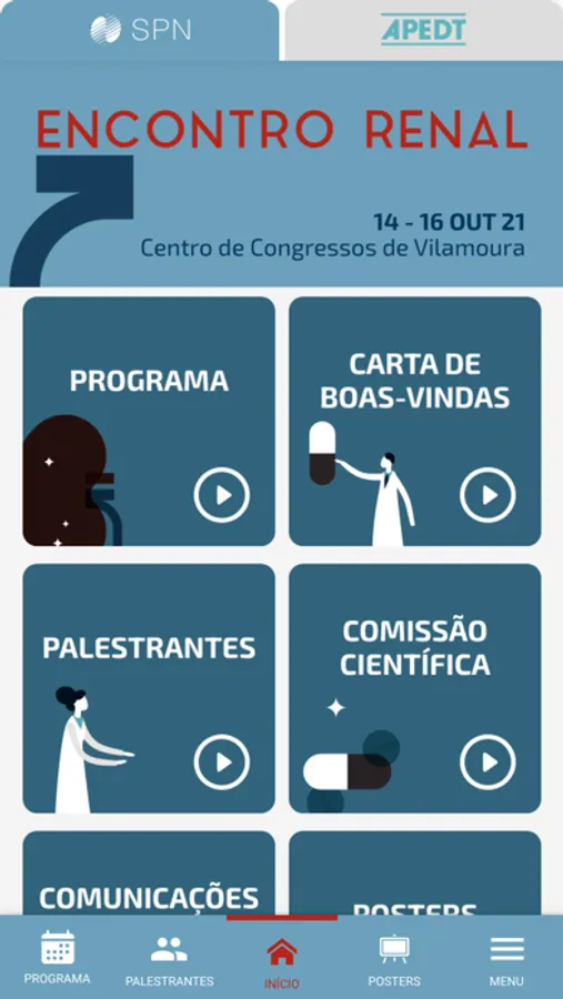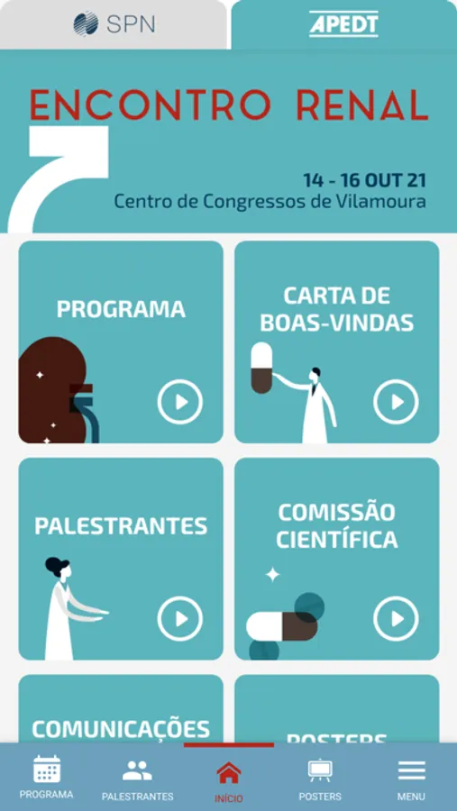 A aplicação Encontro Renal 2021 irá permitir ao utilizador consultar toda a informação relatica ao congresso, que irá decorrer nos dias 14, 15 e 16 de outubro no Centro de Congressos do Algarve (VIlamoura).