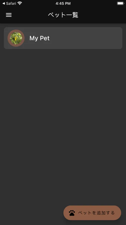 • ペットの登録機能。名前の他に画像も一緒に登録できます!