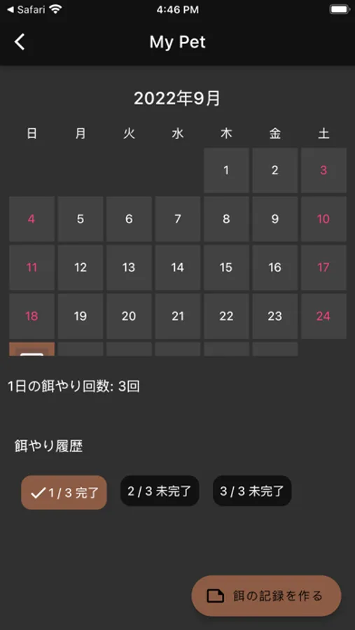 petfeeはペットの餌やりを管理するアプリです。次の機能があります。