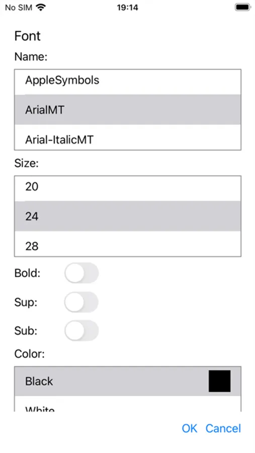 You can format the formula by first selecting the characters you want to change. The selection key is "Sel.", And you can then select by scrolling between the elements of the formula or by pressing the finger on the desired character. You can format the selected formula by pressing the second button on the toolbar from the back. You can change the font, font size, font, and font color