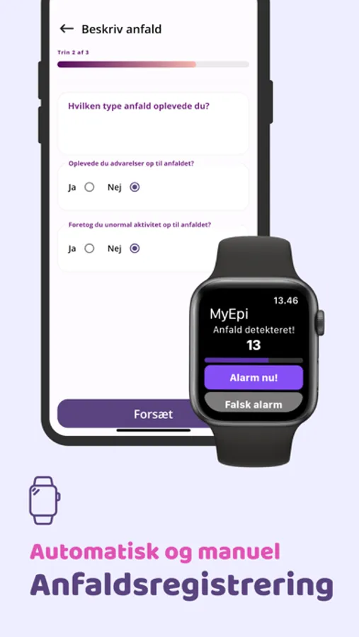 2) Via smartwatch-appen udviklet til Apple Watch, automatisk detektere epileptiske krampeanfald og give øjeblikkelig besked til de tilknyttede kontaktpersoner med en GPS-lokation over hvor personen med epilepsi befinder sig ved et detektere anfald.