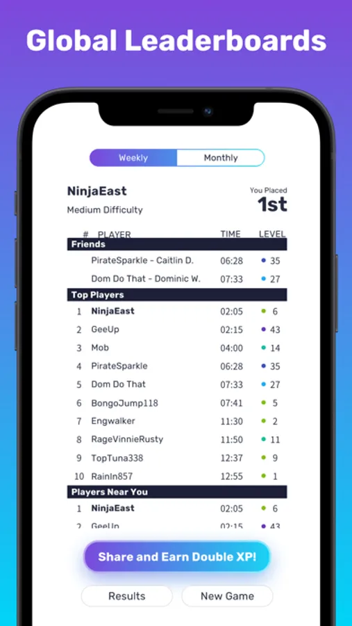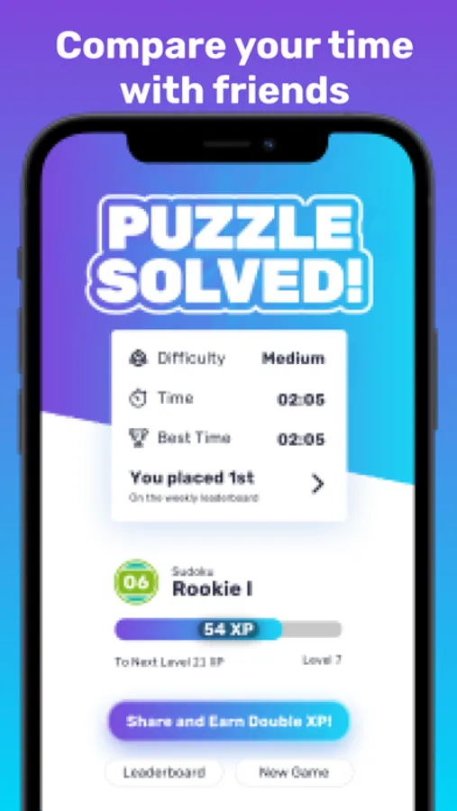 Play the innovative online leaderboard system in Sudoku Social that ranks the fastest puzzle completion time between players on any device. Sudoku Social is the best way to train your brain against the world! Join the fun of challenging your friends and the world to compare fastest puzzle times on the leaderboard. Show everyone who the real sudoku champion is!