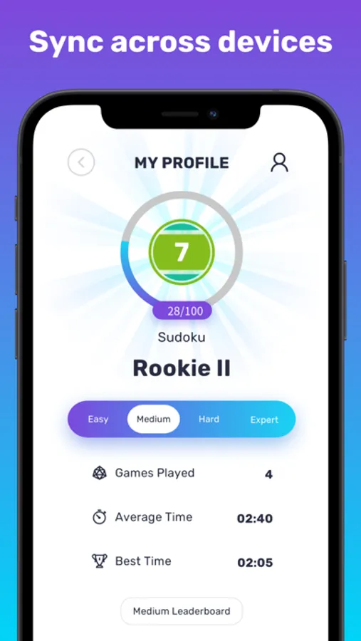 Keep track of your progress. Know your best time and compare times with friends. Rank up on the logic game and become a master of sudoku.