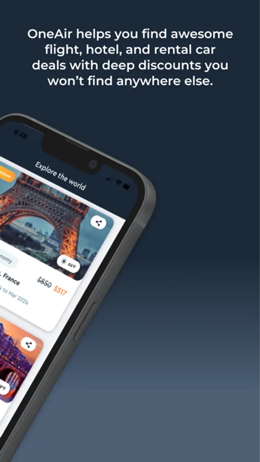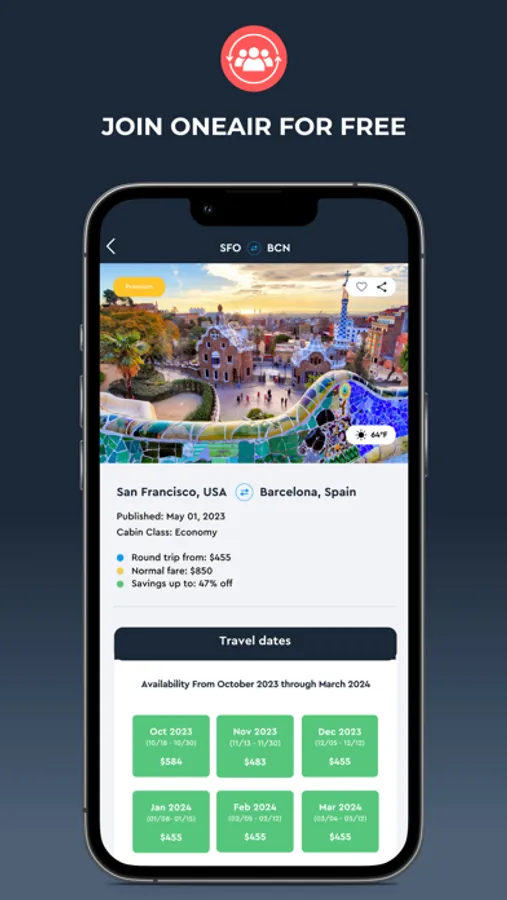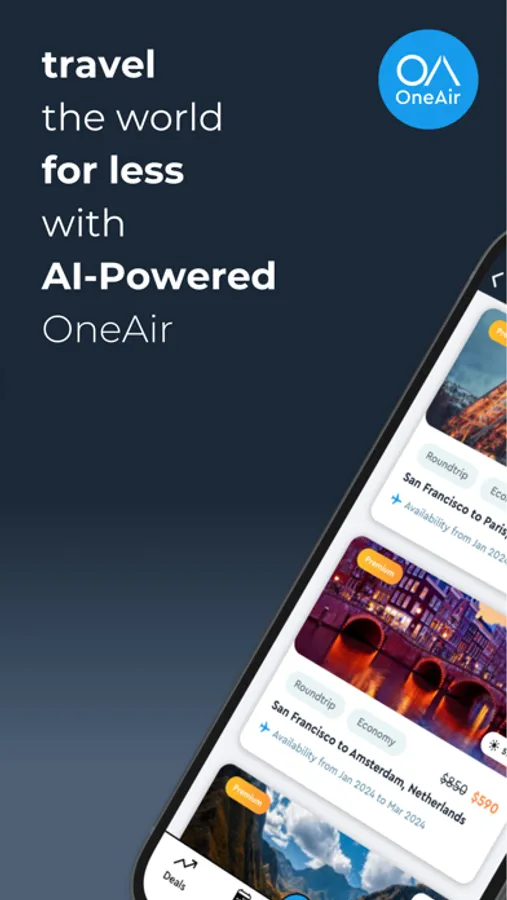 OneAir is an AI-powered all-in-one, members-only travel app that helps you find awesome flight and hotel deals with deep discounts you won’t find anywhere else. Our intelligent engine scans and tracks millions of fares in real-time to top destinations worldwide. When the system finds an incredibly cheap flight deal, members receive an email and a mobile alert.