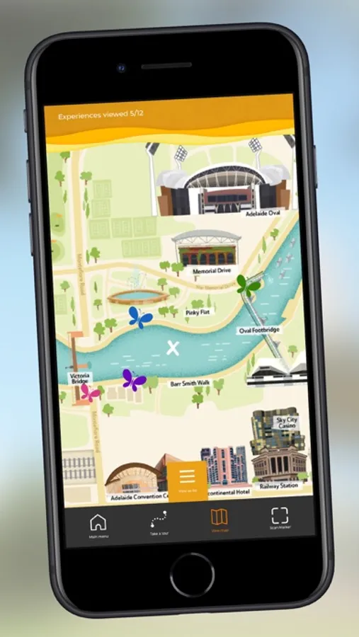 A walking trail with various AR experiences, looking at the history and heritage around the River Torrens.