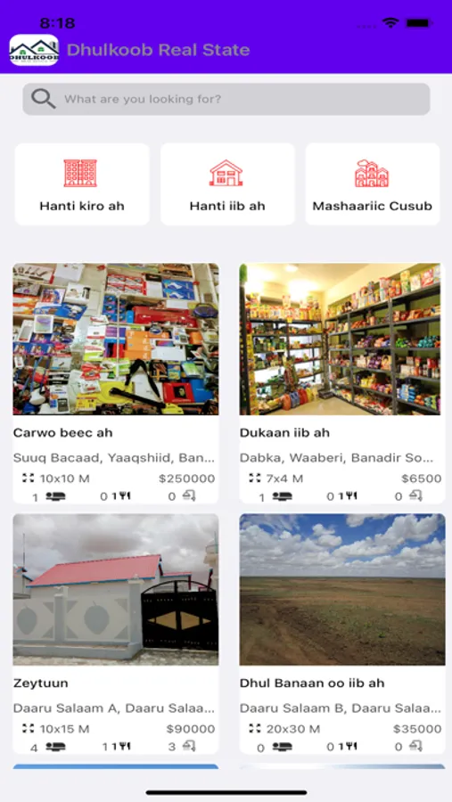 a commercial building , commercial apartment, commercial land , residential apartment , Warehouse , iron sheet include Buy or Rent.