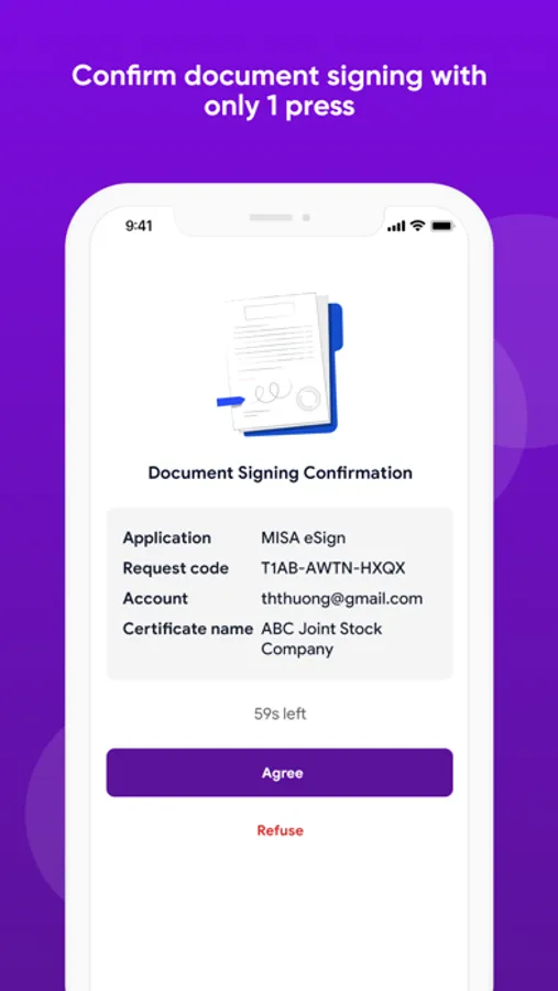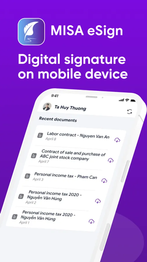 With MISA eSign, users can easily sign documents from mobile devices without USB Token, SmartCard or any other hardware device. MISA eSign meets all technical requirements of eIDAS for digital signature.