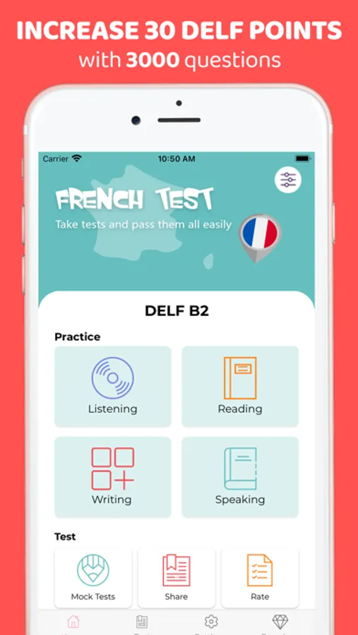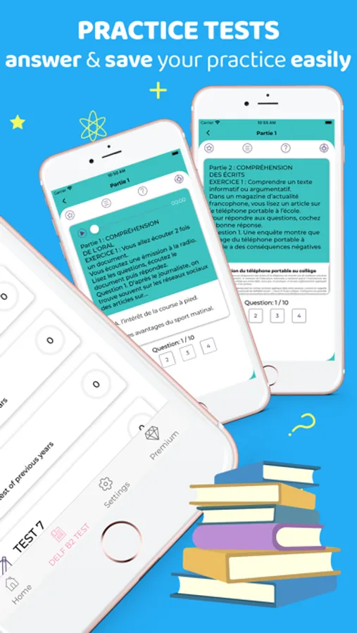 With more than 5,000 DELF questions and 50 DELF exams simulator will be the exam preparation book to store your progress.