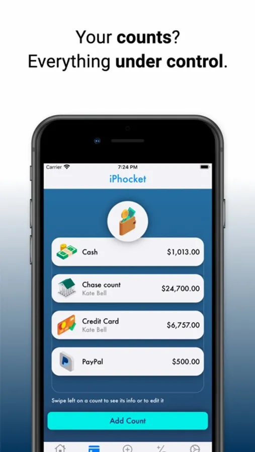 Set your budget to know how much you could spend at any moment, to never break it! Updated in real time!