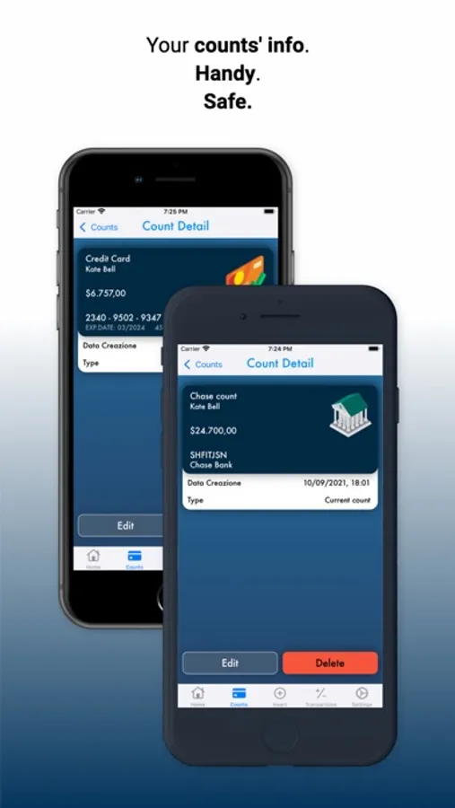 Save your counts and credit/debit cards data , so you will always have them by your hand!