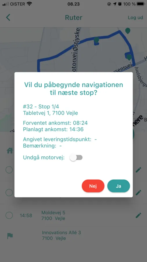 Log ind i appen – start ruten – bliv navigeret fra kunde til kunde og vælg en status ved ankomst. Disse få trin er alt det kræver.