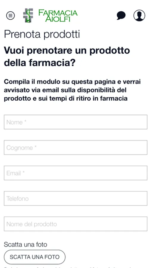 - Richiesta e prenotazione prodotti, anche mediante l'invio di immagini