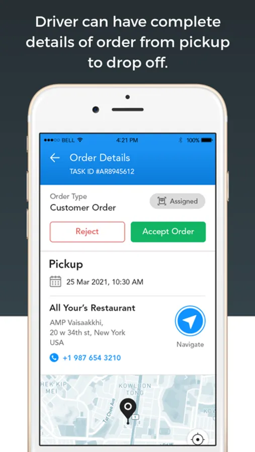 "AllRide Delivery Agent Application is facilitating the agents or drivers from the Delivery Service Provider Company/organization.It will ease their daily work like receiving order, accepting order, delivering order, tracking route from supplier to customer, manage their revenue etc.Also app has feature to update any mishap for any delivery. Agent can decide whether he want to accept the order or not as well as want to go online or stay offline."