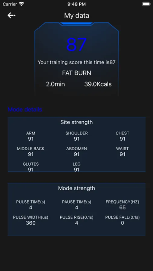 A new generation of training control application to help you better use electric pulse sport shirt or pant.