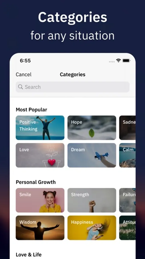 This app contains 61000+ motivational, inspirational, and success quotes that start your day with motivation.