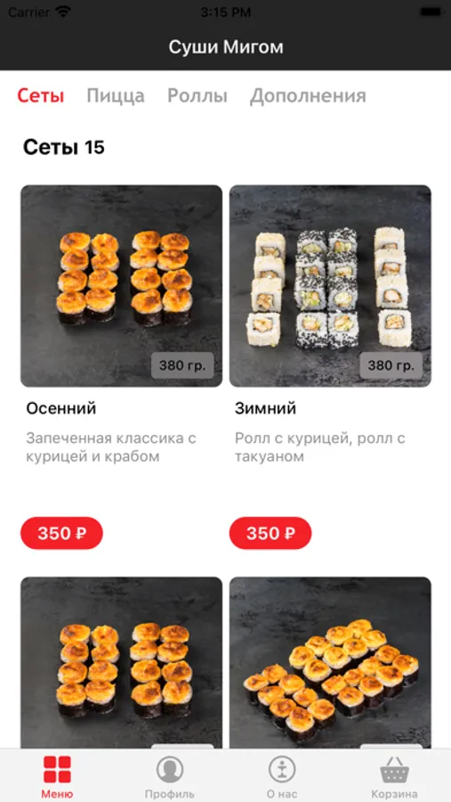 В нашем приложении вы можете заказать роллы и пиццу с доставкой на дом