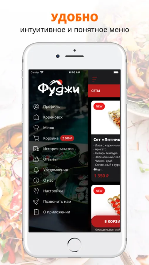 Приложение Фуджи — это удобный способ заказа еды домой или в офис! Мы готовим наши блюда из качественных свежих ингредиентов и доставляем еду по Кореновску быстро и бережно.